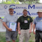 (L-R) Laura Aldred, Boone County Commissioner Justin Aldred, Ernest Shaw KCØEZE, Jim Barresi K0MIZ, Chris Kelley, Director Boone County Office of Emergency Management, Chris Swisher KØPHP, Brett Slaughter KEØBJL